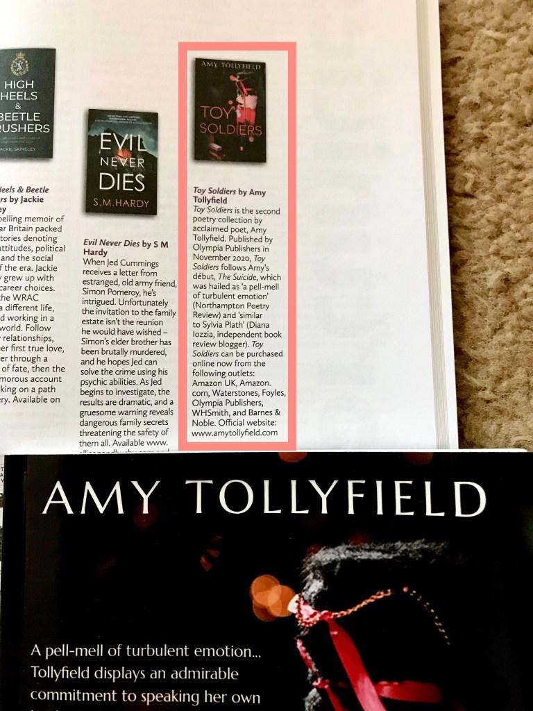 Featuring in Issue 90 of Mslexia, the largest women’s writing magazine in the UK. Toy Soldiers has also appeared in Issue 89 of the magazine (as documented on this site: https://www.amytollyfield.com/gallery)