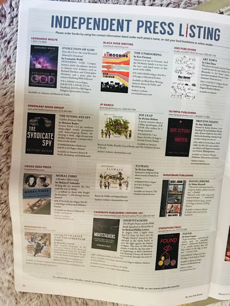 Featuring in the February 2022 issue of highly regarded Kirkus Reviews magazine: an opportunity afforded to less than 10% of indie authors! Photo: Author’s own, 2022
